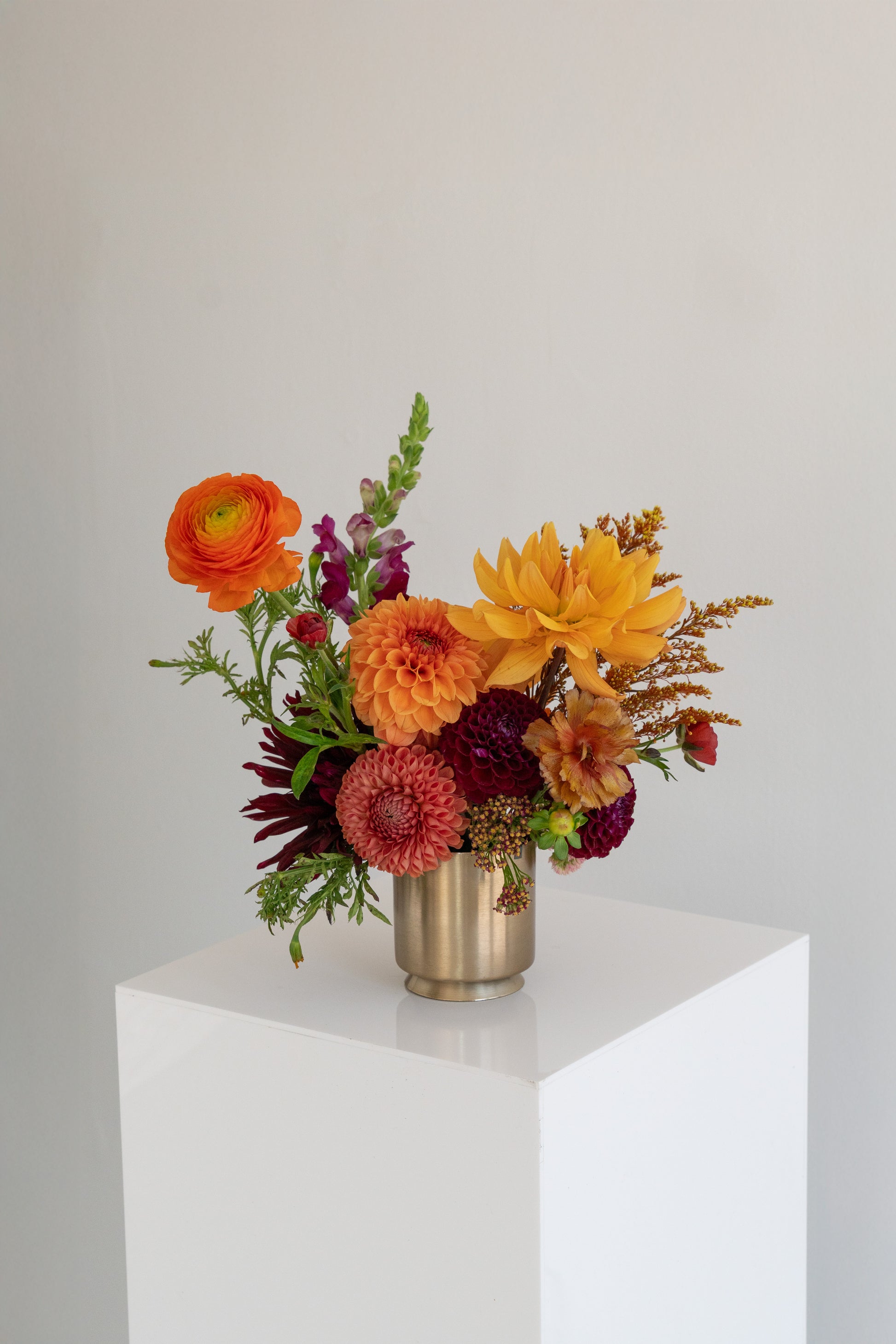 Flower availability changes seasonally and may vary from the image shown. While we do our best to update our website seasonally, you can also view our Instagram account for our latest, in-season work. Each arrangement is made-to-order and one-of-a-kind. Florals always have some variation and may not be exactly as pictured. Hero image reference is our Signature size.